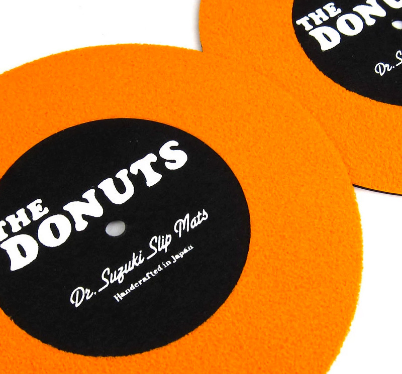 STOKYO JP EXCLUSIVE COLORWAY! Dr. Suzuki’s been getting busy in his Lab to cook up more slipmat innovations for all the tablists out there. It works by placing the Donuts on a standard 12″, then the 7″ on the Donut and voila! The Donuts grip on to the 12″ making it possible to manipulate the 12″ and thus rock the 7″. I find they work best with metal 45 adaptors. More info on adapters coming soon!